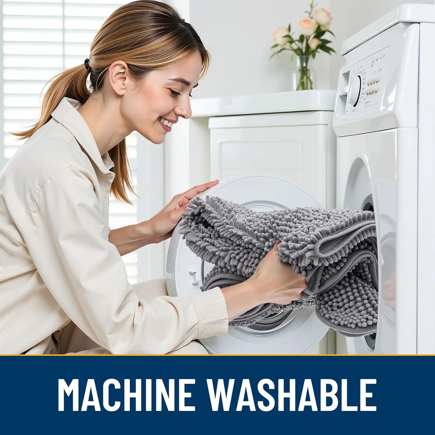 [Soft and Comfortable] This chenille indoor door mat offers a plush, gentle surface that provides cozy support for your pets and family members. Its soft texture helps keep paws warm and comfortable on cold floors, making it ideal for entryways where comfort matters most. [Highly Absorbent and Dirt-Trapping] Designed with high-density chenille material, this mat effectively absorbs moisture and traps dirt from wet or muddy paws. Whether after a walk in the rain or a playful session outdoors, it quickly soaks up water and mud to maintain a clean indoor environment. Say goodbye to messy floors with this reliable solution for pet owners. [Secure Non-Slip Rubber Backing] Equipped with a durable rubber backing, this mat stays firmly in place to prevent slipping on various floor surfaces. For optimal safety, ensure the area beneath is dry before use. This feature adds stability and peace of mind in high-traffic areas like front doors or hallways. [Durable Low-Profile Design] Built to last, this sturdy mat suits multiple settings including homes, offices, patios, garages, and public spaces. Its robust construction resists wear over time while maintaining an attractive appearance. The low-profile design blends seamlessly into any decor without obstructing doorways. [Easy Cleaning and Maintenance] Keeping this mat clean is simple: shake off loose debris or machine wash it as needed for thorough cleaning. It dries rapidly after washing, allowing quick reuse without long wait times. For best results, wash with cold water and air-dry naturally or use low heat settings.