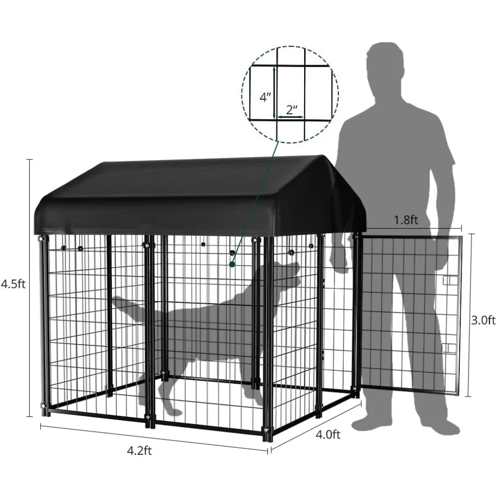 Dog Kennel Outdoor, Dog House with Roof Waterproof Cover for Medium to Small Dog Outside 4ft x 4ft x 4.5ft, Pet Enclosure