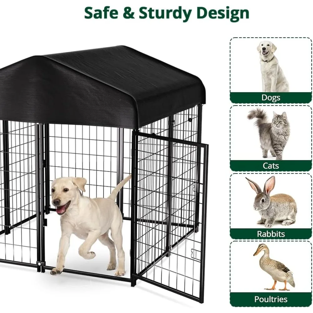 - Waterproof Removable Roof: The dog enclosure outdoor roof is made of UV-resistant and waterproof Oxford cloth, fitting outdoor dog run. Elastic ropes hold it firmly, preventing wind blow-away. The UV-resistant coating prevents fading and cracking
