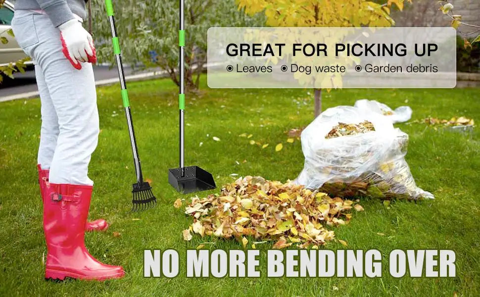 Dog Pooper Scooper Long Handle Stainless Metal Tray and Rake for Medium Small Dogs Heavy Duty Pet Supplies