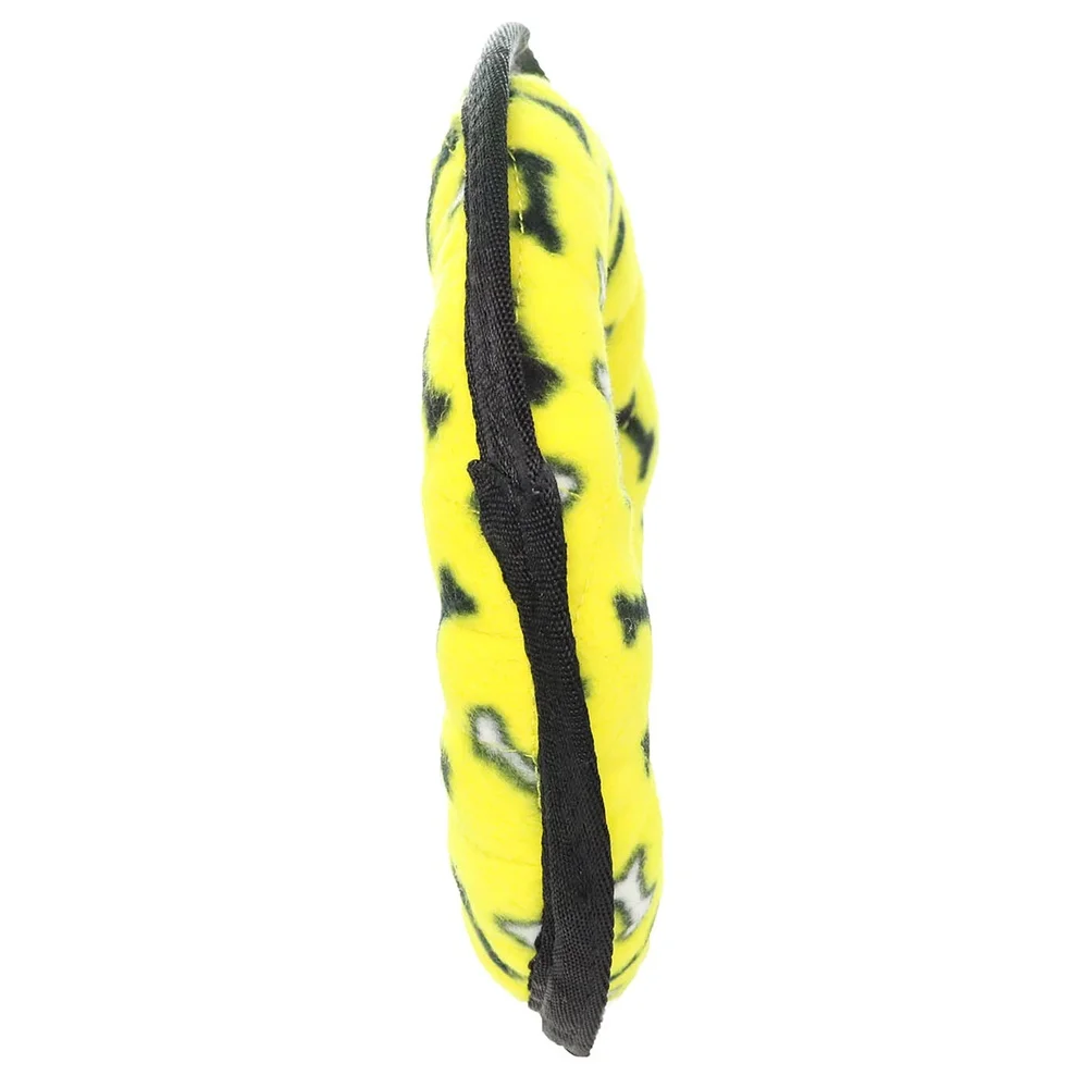 The Tuffy Medium Ring Yellow Bone is a durable plush squeaky dog toy. TUFFY® toys are the most durable dog toys on the market! With up to 4 layers of material and with up to 7 rows of stitching for added durability. A protective webbing is added to the outside edge to cover the seams and make the toy even stronger. Squeakers are sewn inside protective pouches for your dog’s . This extra measure of can give you the time you need to ove the toy in the event your dog reaches the core. TUFFY® toys float in water and are machine washable air dry.