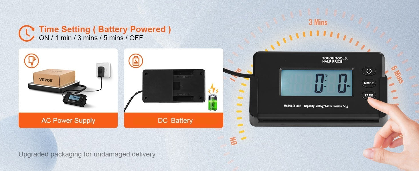 You can choose the power supply that works best for you with our SucceBuy shipping scale. Whether you prefer a power adapter or rechargeable batteries, this scale will always be on standby.
